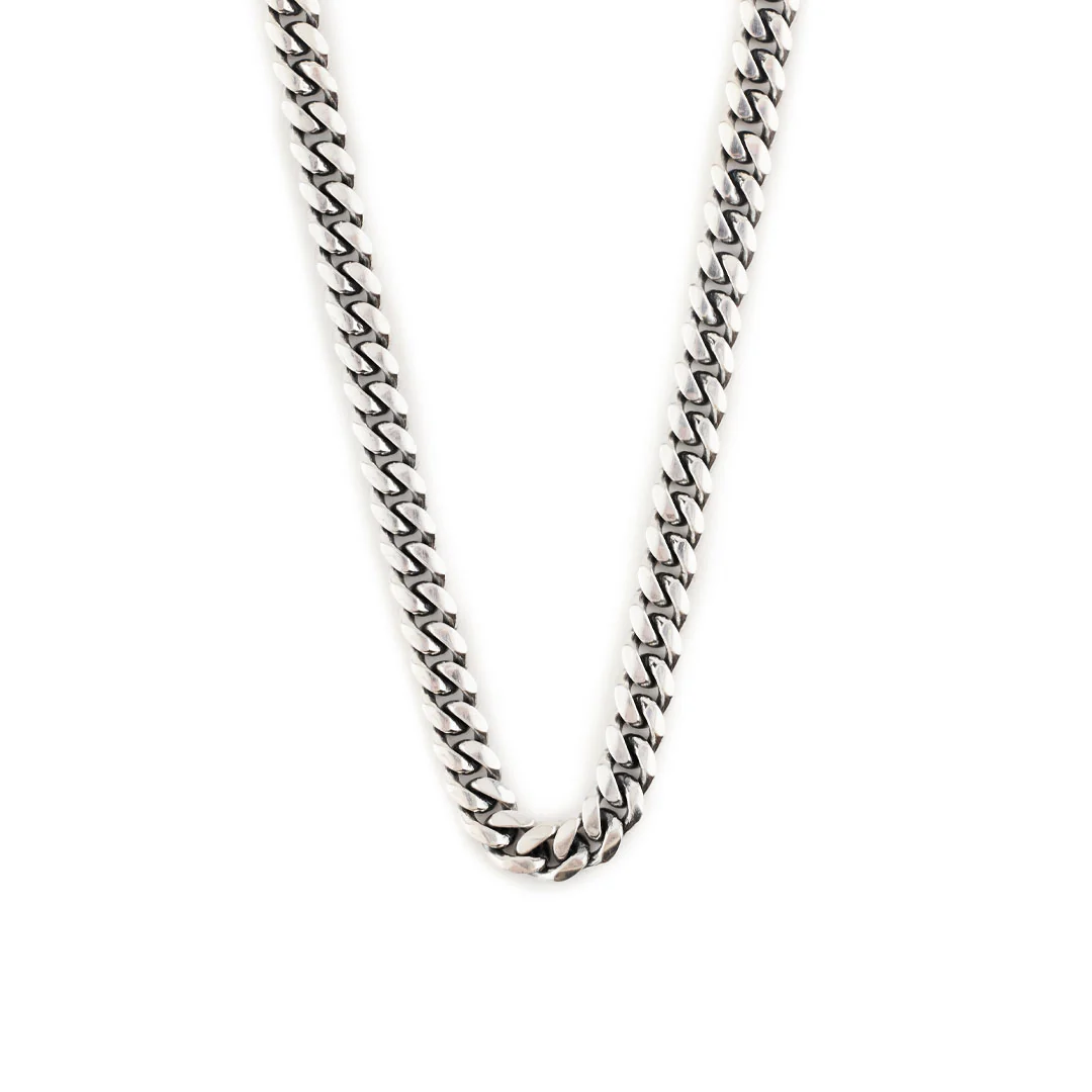 The Silver Curb Chain is a great standalone necklace but it can also be layered with other chains like the Silver Figaro Chain or a more traditional pendant necklace, such as the Silver Minimal Hallmark Necklace.